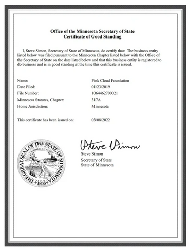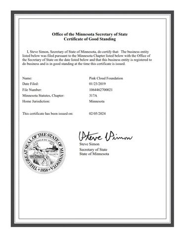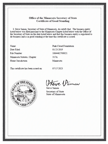 Pink Cloud Foundation is committed to, and continuously strives for, ongoing excellence in financial transparency.